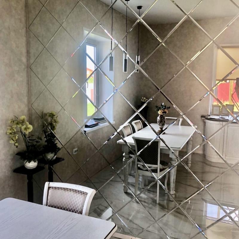 Использована зеркальная квадратная и треугольная плитка с фацетом.